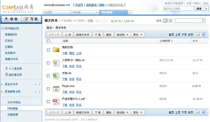 文件中转站采用自主优化、领先的单副本技术,为用户提供大文件的网络临时存储和超大附件的投递服务。在进行超大附件投递时,收件方收到的是一个简单的下载链接,不会受对方邮箱容量的影响,解决了传统企业邮箱超大附件无法投递的难题。
